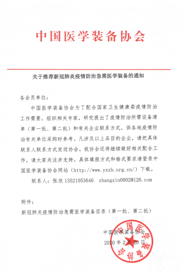 新冠疫情防治急需醫學裝備通知