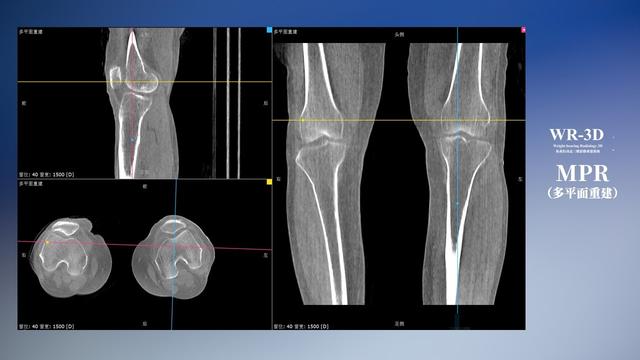 與此同時,數字化X線攝影技術相較于CT和MRI來說,能快速獲取真實、直觀、滿足臨床需要的影像。DR的圖像具有圖像層次豐富、空間分辨力高、影像邊緣銳利清晰、密度分辨力高級細微結構表現出色等特點,針對膝關節解剖結構數字化X線攝影技術應用價值很高,尤其是是對骨小梁與骨皮質的顯示非常清楚。在負重位狀態下,數字化X線三維攝影掃描與重建,能夠更好的呈現受檢者關節受力改變的狀態。安健科技創新的WR-3D動態三維數字化X線攝影技術,通過數字化X線攝影完成三維掃描并重建三維影像信息,包括MPR多平面重建、MIP重建以及VR繪制。掃描時間短,劑量相較于CT設備大幅縮減,同時成本更低,在臨床診斷以及醫療方案制定中具有極大的價值意義。相較于普通平片下的負重位掃描,負重位動態三維掃描攝影技術能夠避免二維狀態下的組織結構重疊、密度分辨率不足、組織解剖結構難以分辨等問題,WR-3D支持多角度的動態三維攝影觀察,能全面的呈現被檢查部位在多個角度下三維影像信息,極大的減少了二維負重位檢查的漏診率。