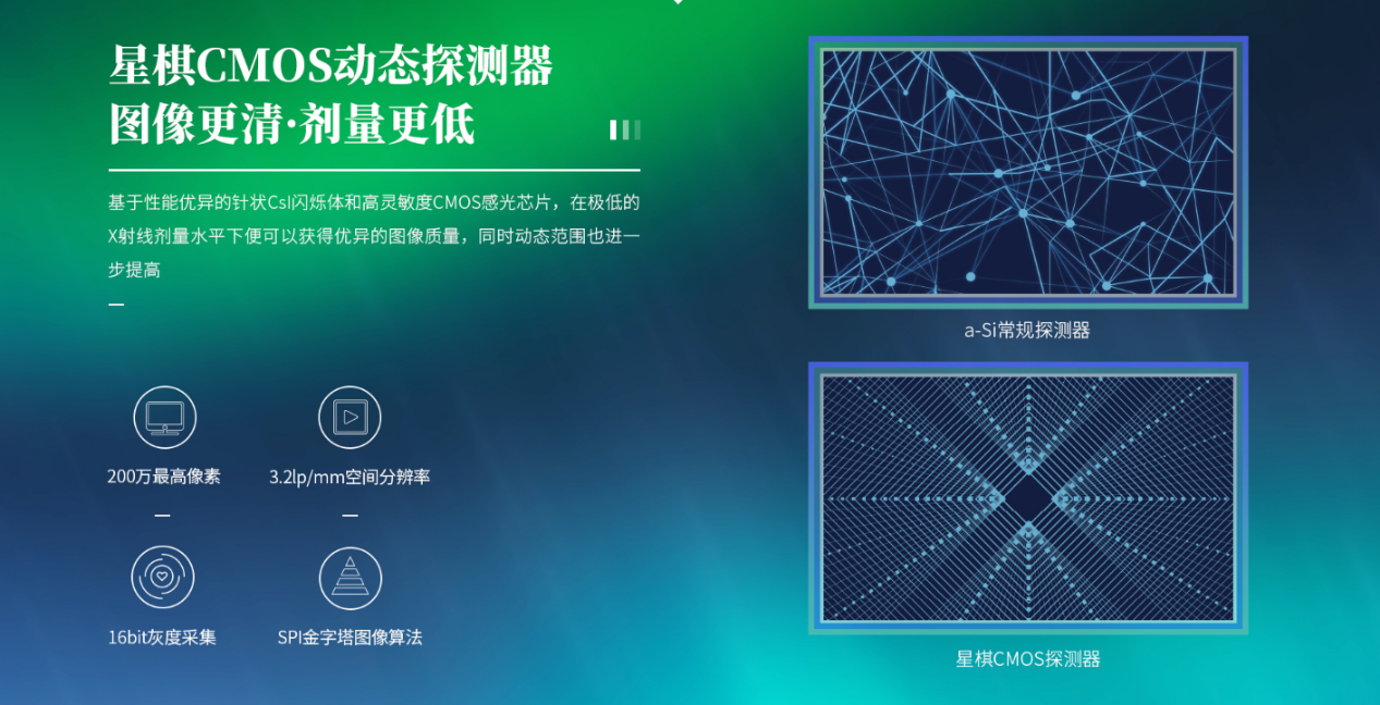 在產品的性能參數設計上,悅畫的像素可達到200萬,空間分辨率可達到3.2線對,采用16bit的影像灰度,悅畫在影像后處理上,通過SPI金字塔圖像算法,支持攝影、脈沖透視影像、連續透視等多種模式下的影像采集,動態透視影像視頻支持保存與回放。雙大屏的設計,透視影像支持三檔放大,保證臨床影像讀取的便利。