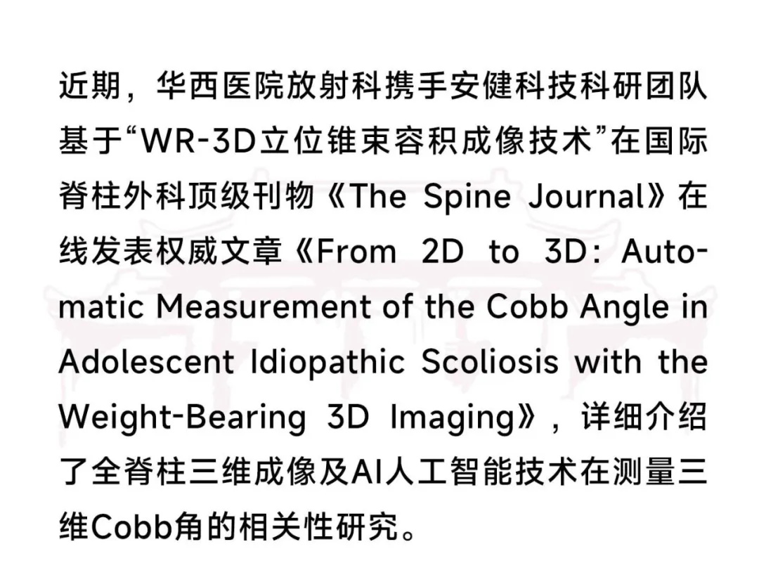 登陸脊柱全球頂刊| 安健科技與四川大學華西醫院立位錐束CT研究成果登陸脊柱全球頂刊《The Spine Journal》
