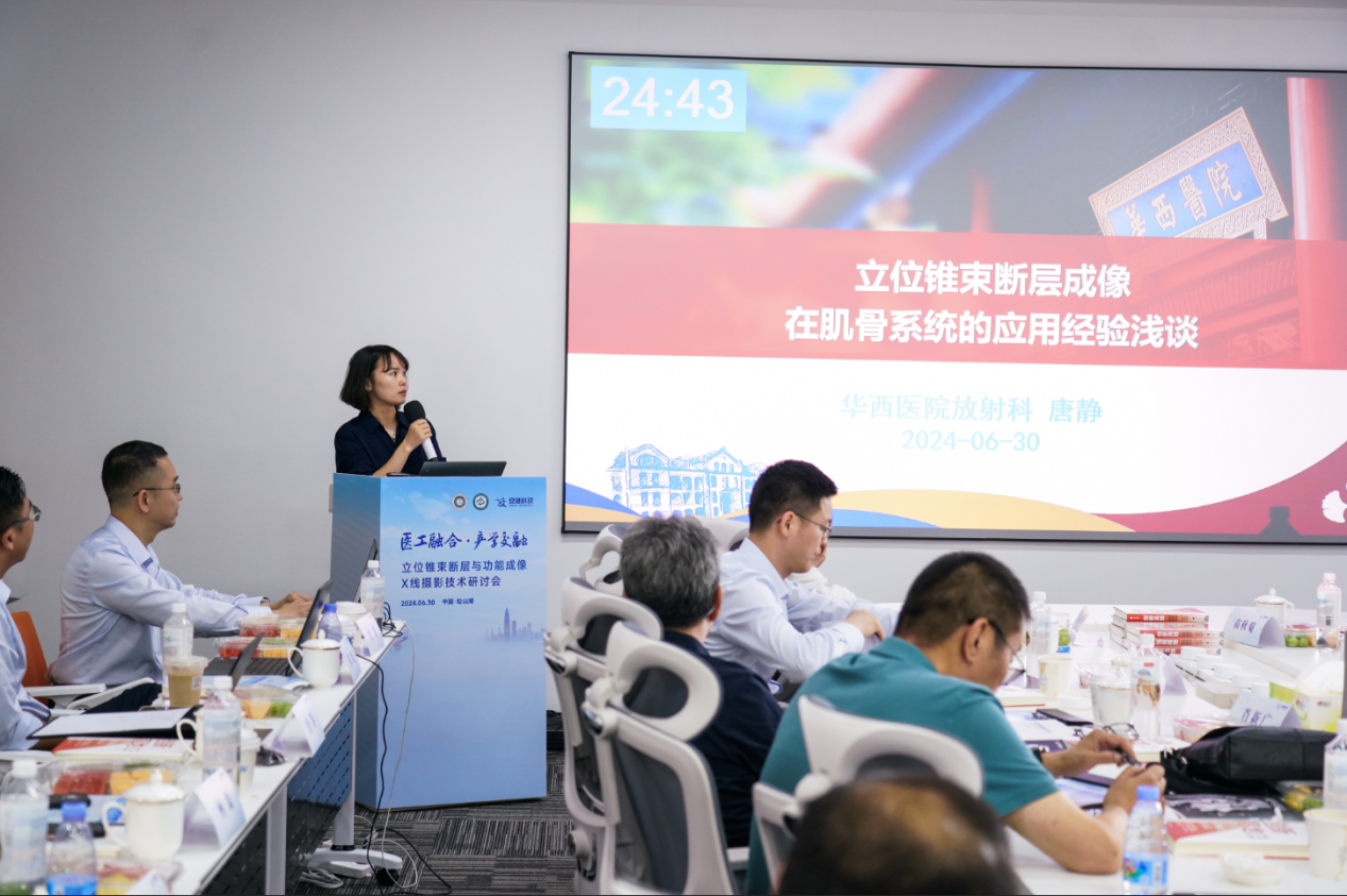 四川大學華西醫院放射科唐靜教授作《骨肌影像新進展:立位錐束斷層成像在肌骨系統的應用經驗》報告。